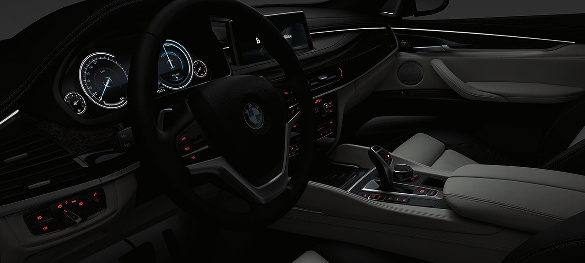 Gói chiếu sáng bao gồm nhiều đèn LED trong không gian nội thất của BMW X6, mang đến một không gian thanh lịch, thư giãn. Đèn viền nội thất bao gồm gói hiệu ánh sáng “chào mừng” và chín gói thiết kế ánh có sẵn từ các màu xanh da trời, trắng và cam mang đến cho không gian nội thất cảm giác thư giãn, dễ chịu bằng việc kết hợp các màu sắc sáng trực tiếp và gián tiếp. Hệ thống đèn viền nội thất còn bao gồm hệ thống chiếu sáng trần, các đường viền ốp ở khu vực cửa, táp lô, khu vực điều khiển trung tâm, khu vực để chân phía trước và hàng ghế sau cùng một số khu vực khác.