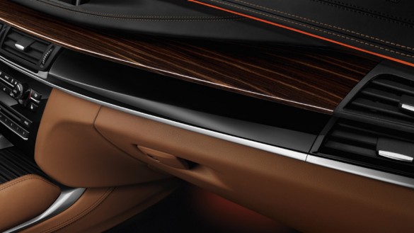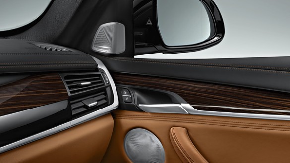 Chất lượng hàng đầu là điểm nổi bật của các chi tiết trang trí và thiết bị bọc da bên trong chiếc BMW X6. Bản thân nội thất chiếc BMW X6 là một loạt sự kết hợp các màu sắc ấn tượng sẵn có. Ngoài ra, bạn cũng có nhiều lựa chọn khác như sử dụng da đen mềm Nappa kết hợp với gói Design Pure Extravagance màu Đen/Cognac sẽ tạo nên sự tương phản với các mũi khâu màu nâu cho phần trên của bảng điều khiển trung tâm; trong khi phần dưới có màu Cognac. Các đặc điểm của gói M Sport bao gồm sự kết hợp giữa da / Alcantara màu đen và nội thất bằng hợp kim nhôm Hexagon. Da Dakota cũng là một tùy chọn có nhiều màu sắc; màu đỏ Coral với mũi khâu tương phản màu đen kết hợp với trang trí nội thất trong Fine Brushed Aluminium cũng là một lựa chọn đáng chú ý, mang đến một dấu nhấn riêng.